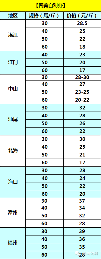 湛江区域 本周出虾相对较少,价格略有下跌,目前排塘现象比较严重,放苗受到影响,预计后市价格平稳。